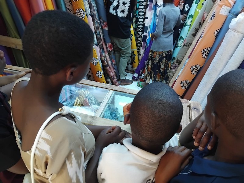 No njima je važno da nisu same i da ih netko drži za ruku. Zastali smo pred "štandom" sa šarenim platnima i kangama. "Hajde, odaberite platno koje vam se najviše dopada!" govori im Anna.