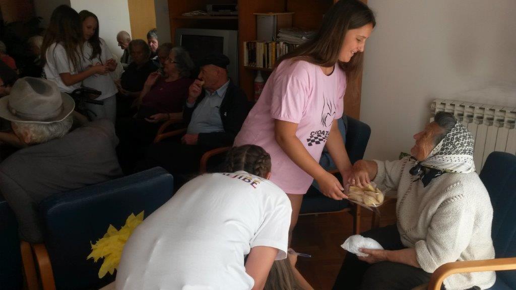 Dva pojma smo istaknuli u igrokazu „U tuđim cipelama“: promjena i radost, koja su važna za svakoga čovjeka. Često zaboravljamo kako je hodati u tuđim, starim, izderanim cipelama ili kako je uopće biti bez cipela. Može li nas to potaknuti na promjenu? Stvaran događaj, stvaran lik dječaka Antonia iz Venezuele bio je poticaj za ovaj igrokaz. S kojim oduševljenjem je izvođen i gledan možete samo zamišljati i poželjeti ga pogledati. Sve što smo radili tri dana na Velebitu, odlučili smo podijeliti sa ljudima u Gospiću koji su smješteni u Staračkom domu. Donijeli smo im radost. Bili su sretni što još netko misli na njih. Bilo je suza radosnica: plaču djeca, plaču stariji. Svojim programom, radošću i zainteresiranošću za njih i njihov život oduševljavali smo ih, a mi smo iz njihovih sijedih vlasi ponijeli mudrost života. Mladi Zdenčani su bili na svojoj prvoj misiji i bila je više nego uspješna.