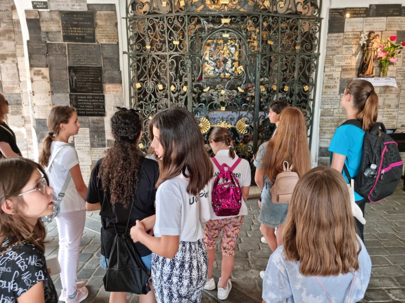 Posjetili smo i Gospu od Kamenitih vrata zaštitnicu grada Zagreba. Upoznali smo se s čudesnom poviješću Gospe i čudima koja se događaju po njenom zagovoru do danas. Pomolili smo se na nakane Zdenca i osobne nakane i krenuli do crkve sv. Marka.