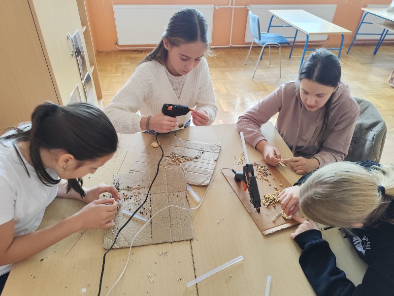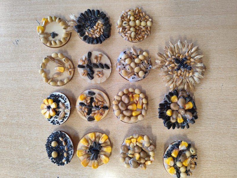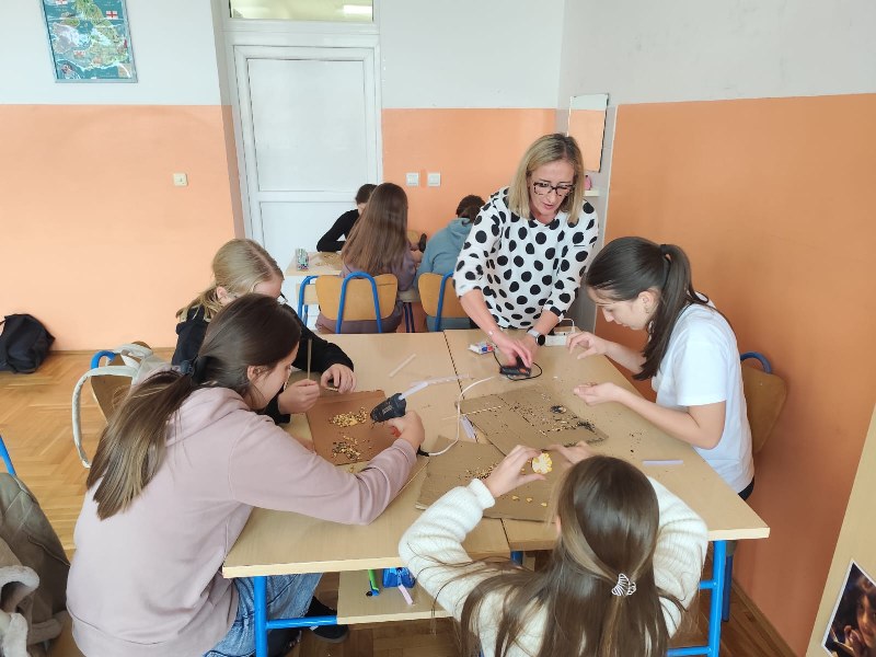 U kreativnom dijelu radionice izrađivali smo broševe od malih komadića drveta i sjemenki kukuruza, suncokreta, soje, pšenice…