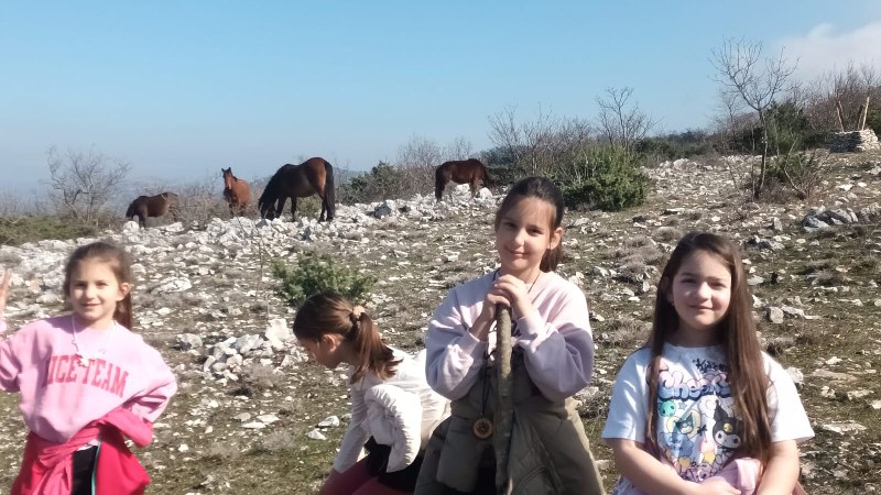 Putem su nas iznenadila četiri znatiželjna divlja konja koji su nam prišli i neko vrijeme kružili oko nas. Djeci je ovaj susret bio posebno zanimljiv i uzbudljiv, jer su konje mogli promatrati iz velike blizine.