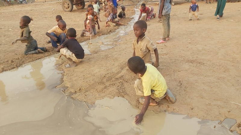 Djeca, mladi, stari. Dotiču vodu. Deseci posuda punih pitke vode nose se kućama za ručak od bijelog mljevenog kukuruza.